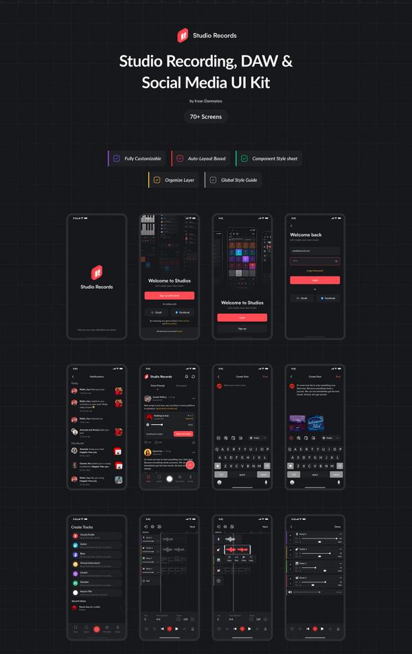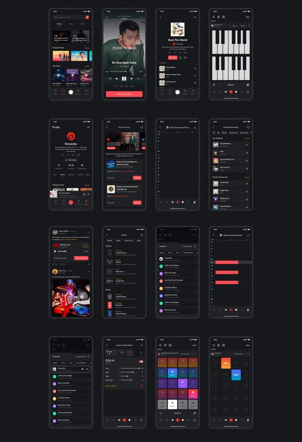 70页暗色专业音乐编辑器APP UI资源素材figma源文件下载