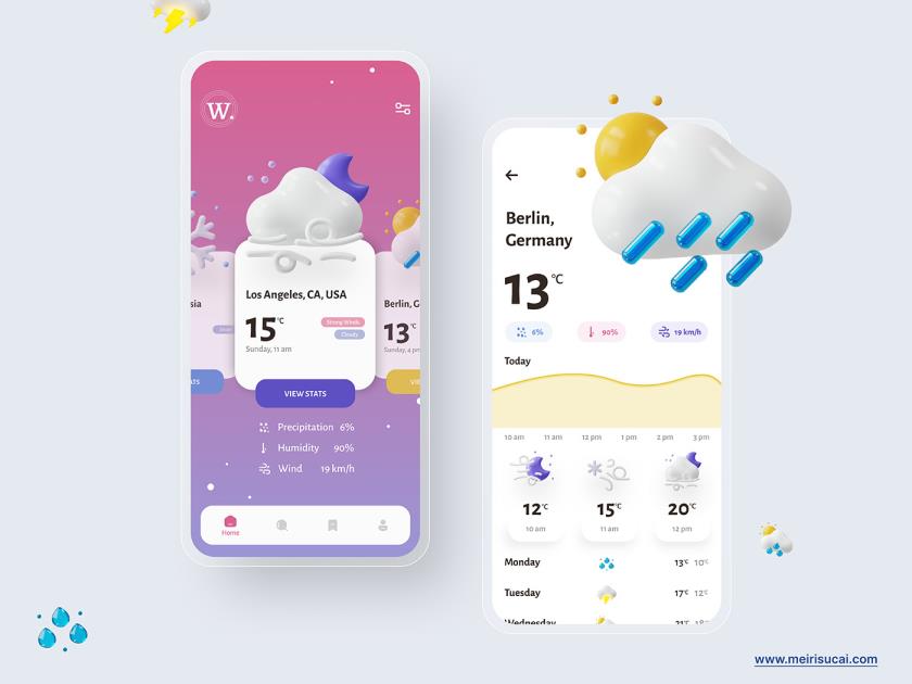 3D天气预报App素材sketch,xd,figma格式