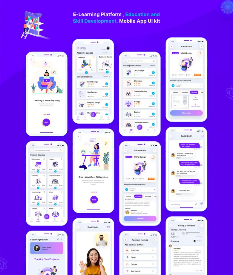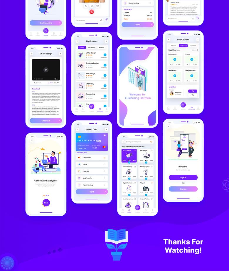 38屏figma电子学习教育应用 | 在线学习移动应用程序 UI 套件