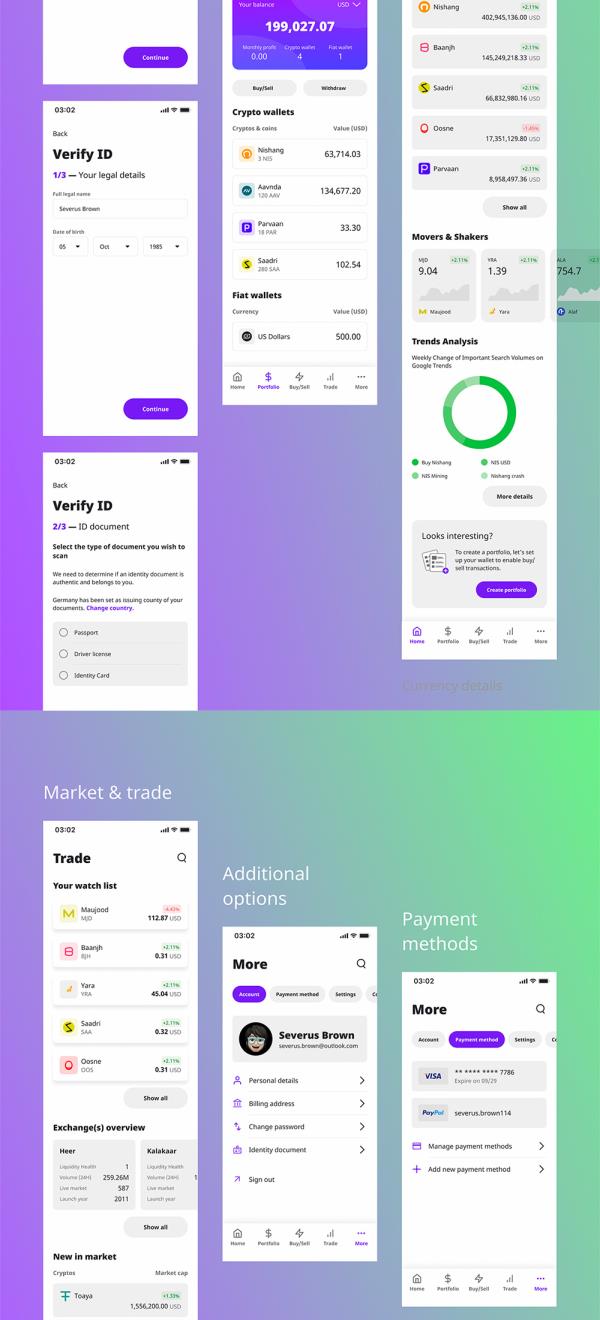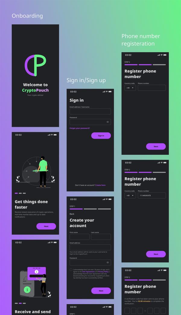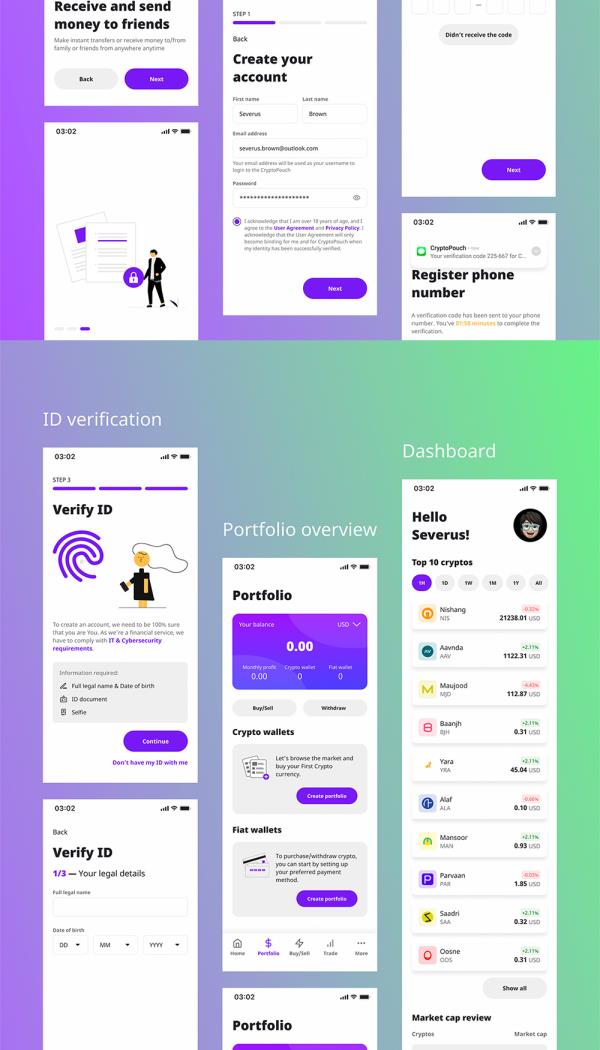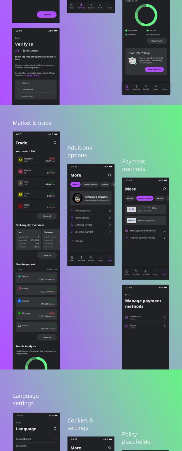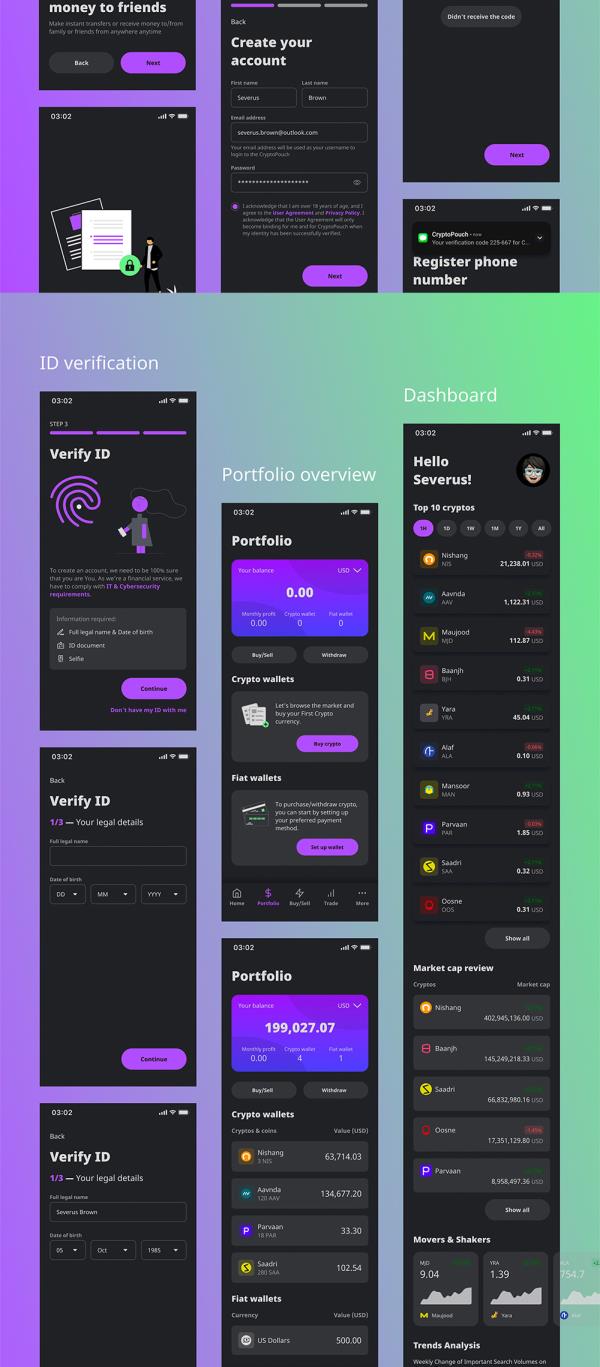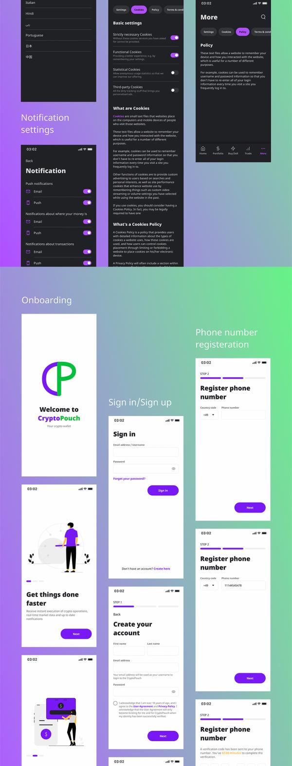概述n“CryptoPouch 移动应用程序用户界面工具包”——一个移动应用程序用户界面工具包,可帮助支持您的加密钱包应用程序开发过程。它适用于加密货币交易所、加密货币初创企业、加密货币投资者、剥头皮交易者、日内交易者、波段交易者、头寸交易者和相关业务。CryptoPouch 带有一个现代的用户界面,平衡了使用 Figma 工具打造的流畅的用户体验。该套件包含 100 多个用户体验友好的屏幕,整齐地分组并相应地组织起来,可以轻松更改所有设计。它将帮助您更快、更轻松地为加密操作设计清晰的界面。nn——————nn应用程序设计提供了哪些解决方案?nCryptoPouch Mobile UI Kit 提供涵盖广泛的加密和应用程序操作的解决方案,即n1. 客户入职n2. 账户创建n3. 电话号码注册和验证n4. 身份验证n5. 加密仪表板n6. 投资组合和钱包跟踪n7. 购买加密货币n8. 出售加密资产n9. 从法币提款到本地账户n10.交易和市场概览n11. 账户、支付方式、App 设置等更多操作nn——————–