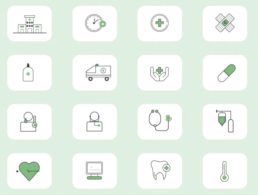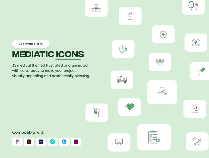 35 个插图和动画图标,医疗主题, 包括医生预约Ai、SVG、EPS、AE等格式