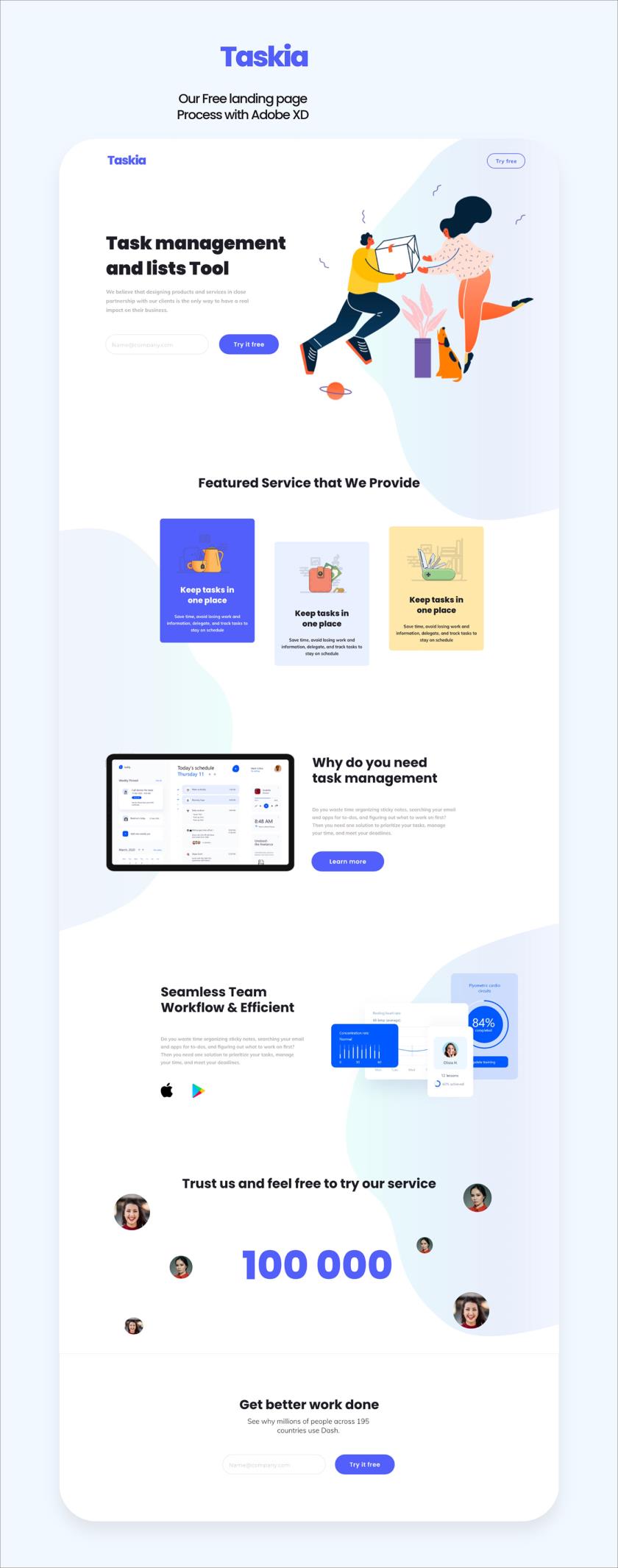 插画风Taskia -创意登陆页网站设计xd,sketch格式