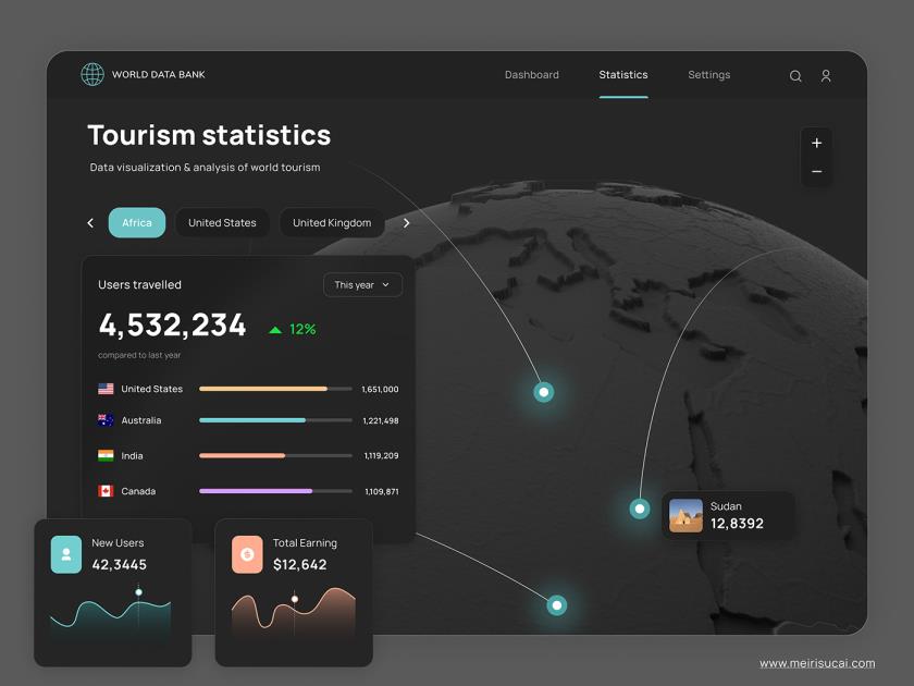 3D智能化旅游大数据分析网站设计素材sketch,xd,figma格式