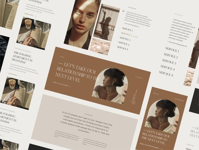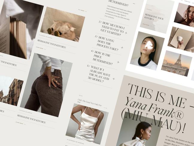 干净文艺女性风格-3个响应式登录页设计UI 40个网站模块figma格式