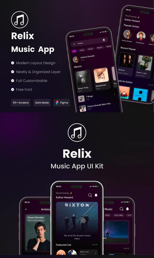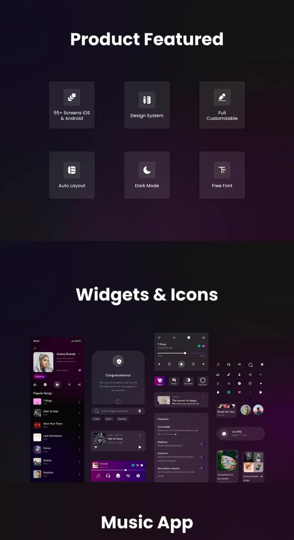 酷黑音乐类APP UI资源素材sketch,xd,figma资源素材下载