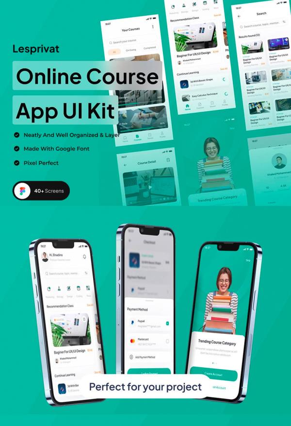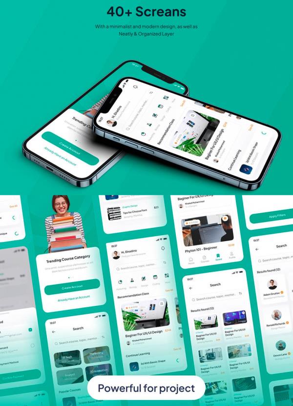 40页在线学习课程App应用程序UI套件figma素材