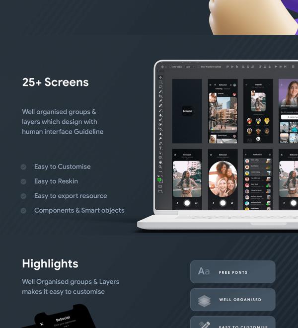 暗色风图片社交APP UI资源素材设计模板xd源文件