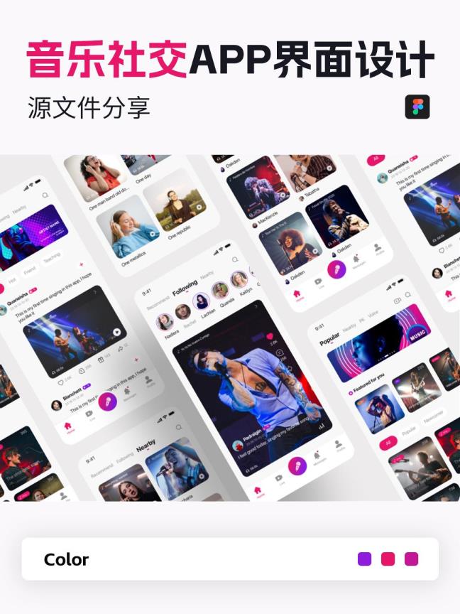 5页音乐社交APP/小程序设计|UI设计Figma源文件