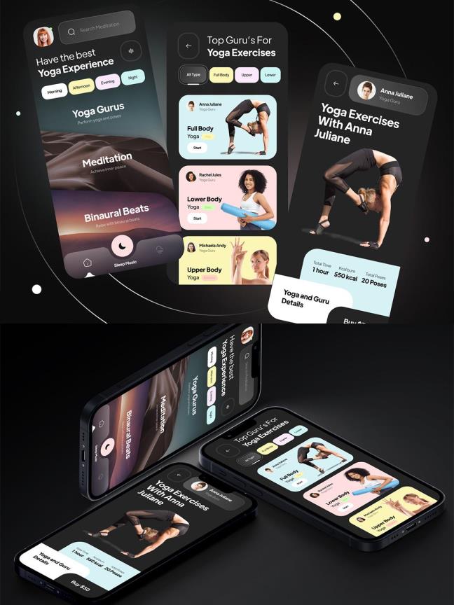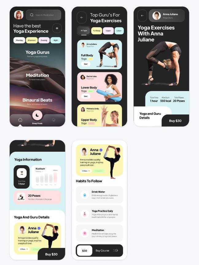 5页瑜伽健身APP设计UI界面设计Figma源文件