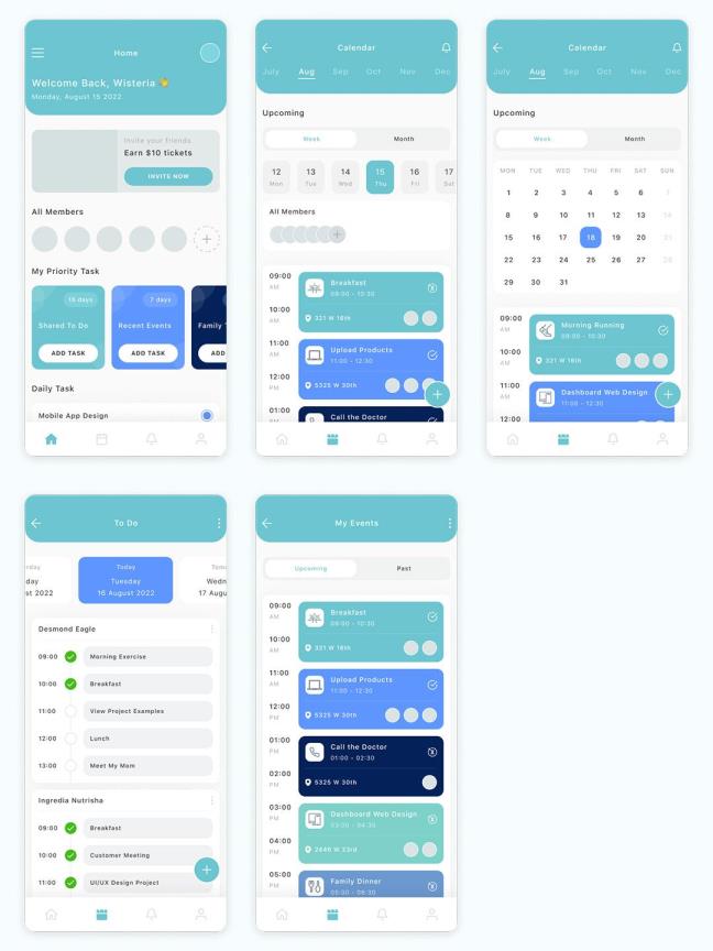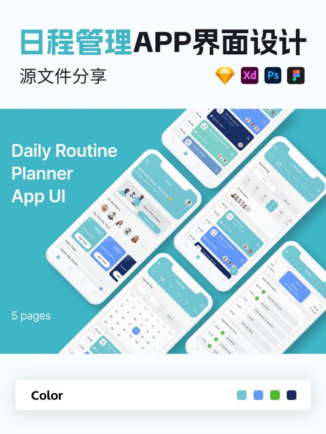 5页日程管理APP设计figma/xd/ps/sketch源文件