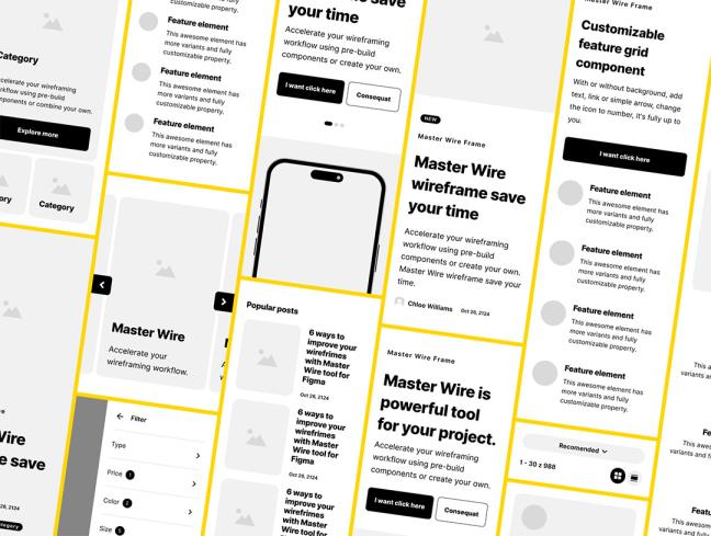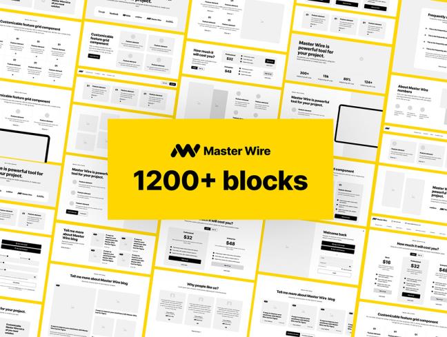 超全网站线框套装包含 22 个页面和 1200 + 预制模块figma源文件
