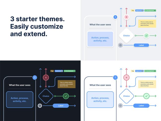 Flowin 是一个功能强大、操作直观且灵活多变的 Figma 资源库,可用于创建各种不同 “精细程度” 的用户流程图,涵盖任务流程、用户界面(UI)流程、线框流程,甚至是带有注释的最终设计流程。