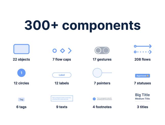 Flowin 极其易于定制和扩展。你只需定制 16 个主组件,就能将其变为符合自身需求的工具,而这 16 个主组件是 300 多个其他组件的构建基础。n无需再订阅其他应用程序或服务,Flowin 让你在 Figma 软件内部就能获得创建用户流程图所需的所有组件。