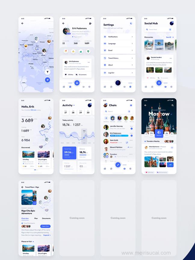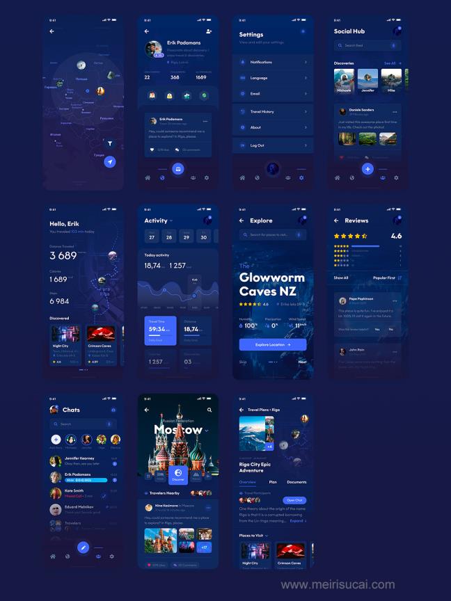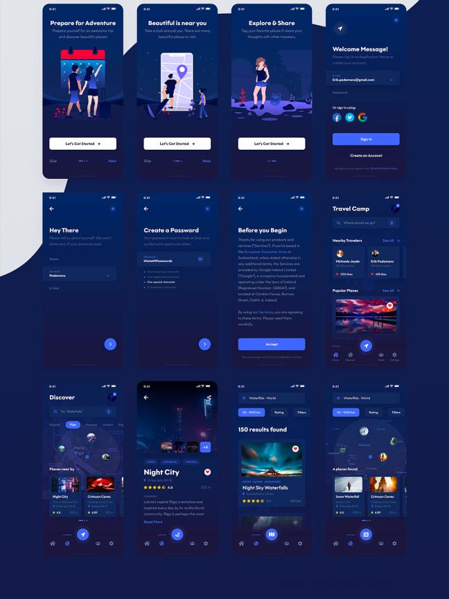 44页明暗色旅游发现app设计sketch,xd,psd格式(ps格式无图片)