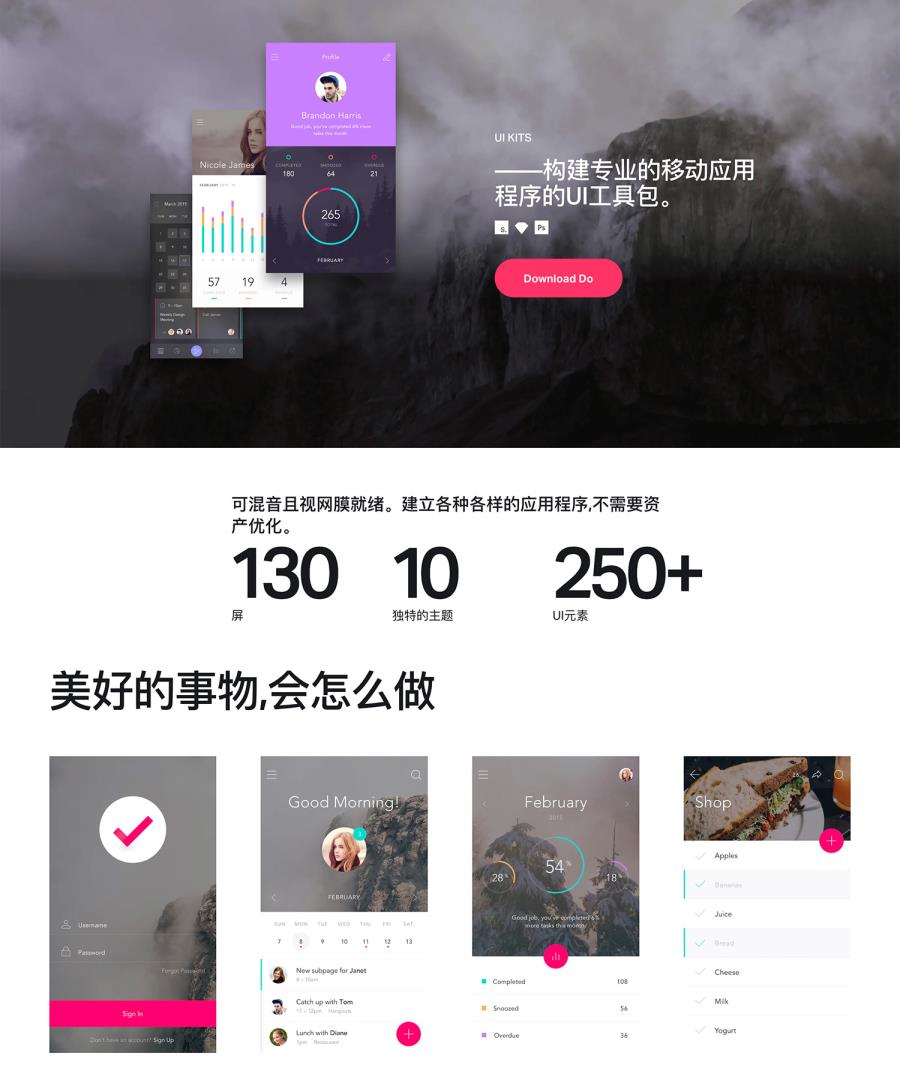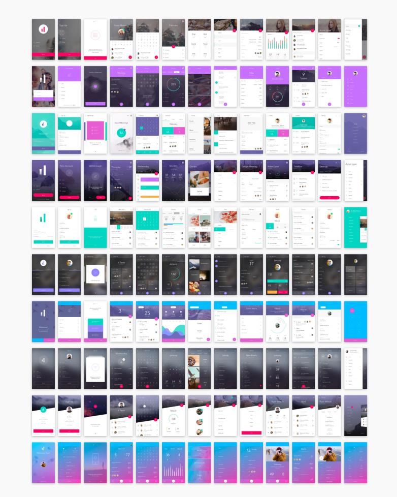 【超赞】拥有130个屏幕,10个主题,250多个组件sketch,psd源文件