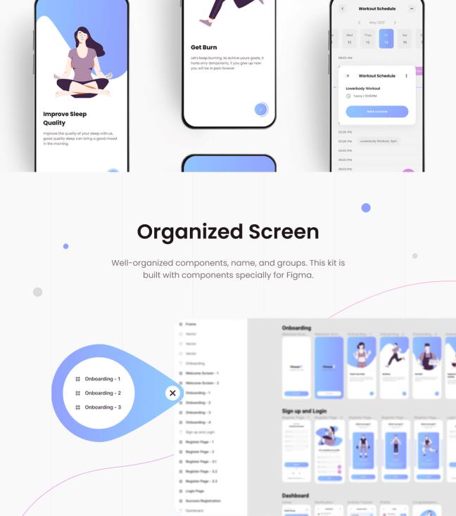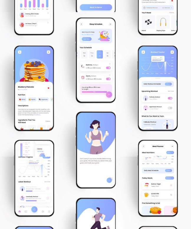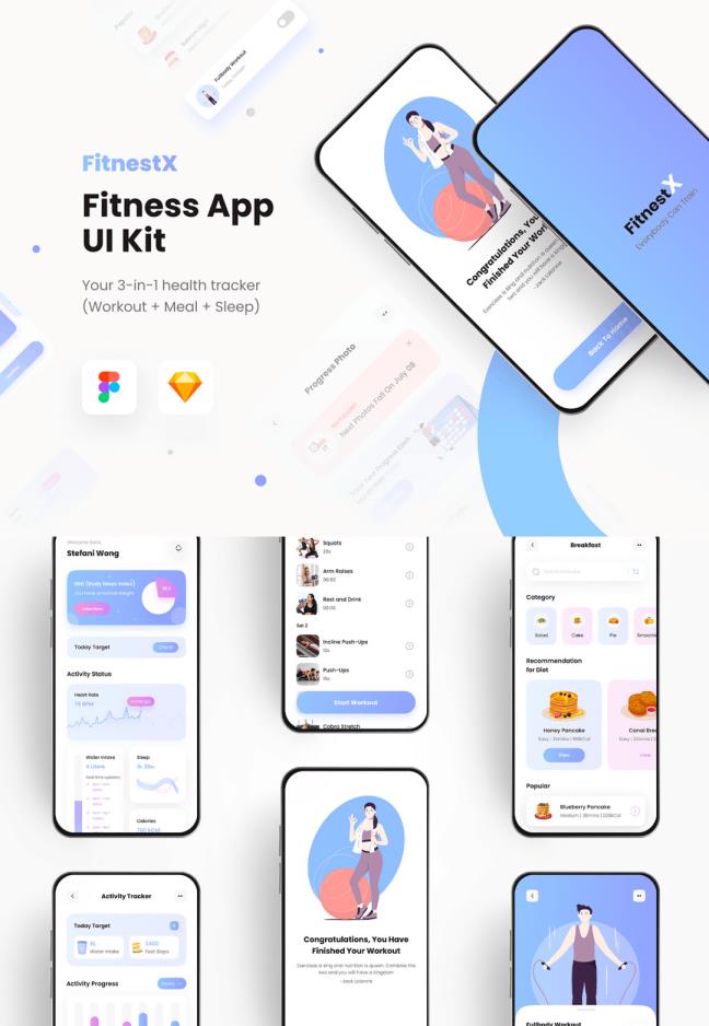 35页跟踪饮食、睡眠/健身App UI 设计xd,figma,sketch源文件