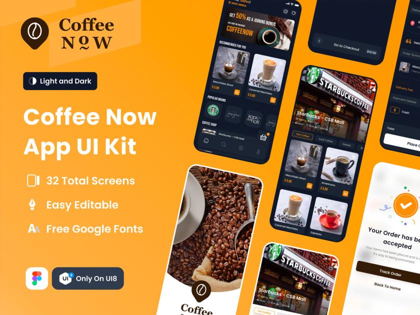 星巴克咖啡制作预定app设计figma源文件,明暗模式设计