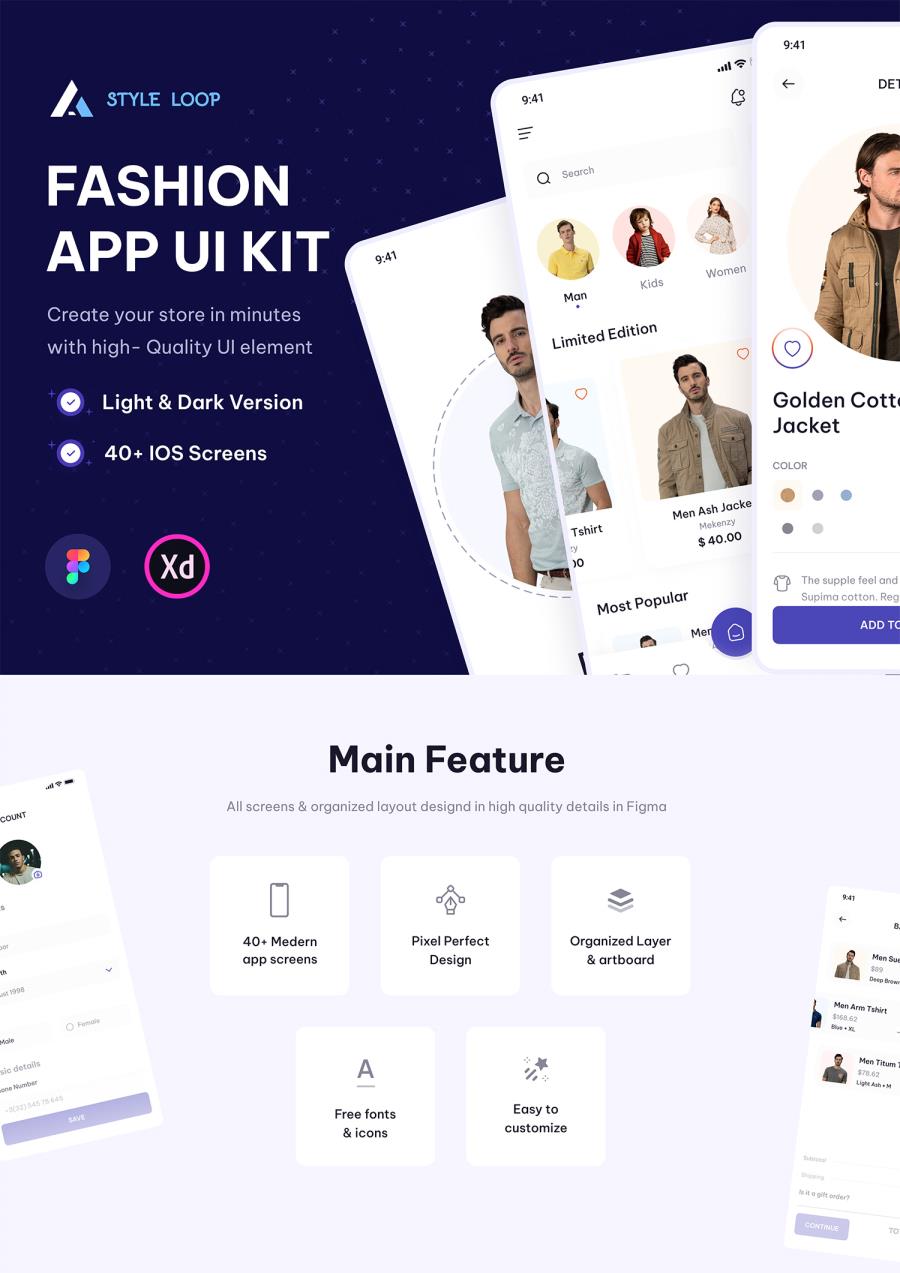 一款服装设计APP,包含40多个很棒的屏幕,兼容Figma和XD,sketch。 设计资源 2025-07-11 多格式 Style Loop是一款服装设计应用程序,可以让你把喜欢的东西组合成独特的服装,从面料、装饰到纽扣和拉链,应有尽有。你可以为每件物品选择多种风格,甚至可以把朋友的外观添加到你自己的外观中。风格循环设计过程很简单,所以你可以很快了解到你的新衣服和你想要的衣服搭配在一起是什么样子。它包含40多个很棒的应用程序屏幕。兼容Figma和XD。 阅读全文 资源下载下载价格1.2 素材币VIP免费升级VIP立即购买