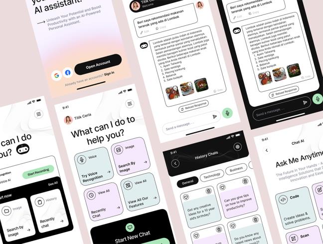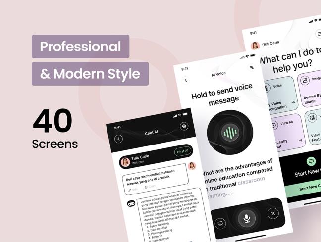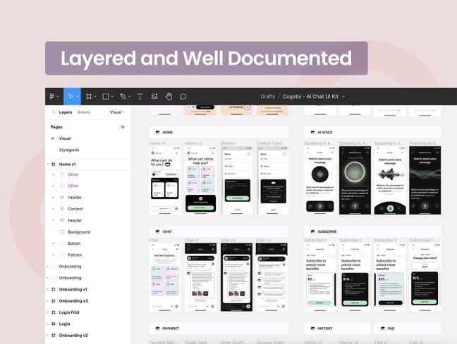 40页专业的ai人工智能聊天机器人ui工具包figma源文件