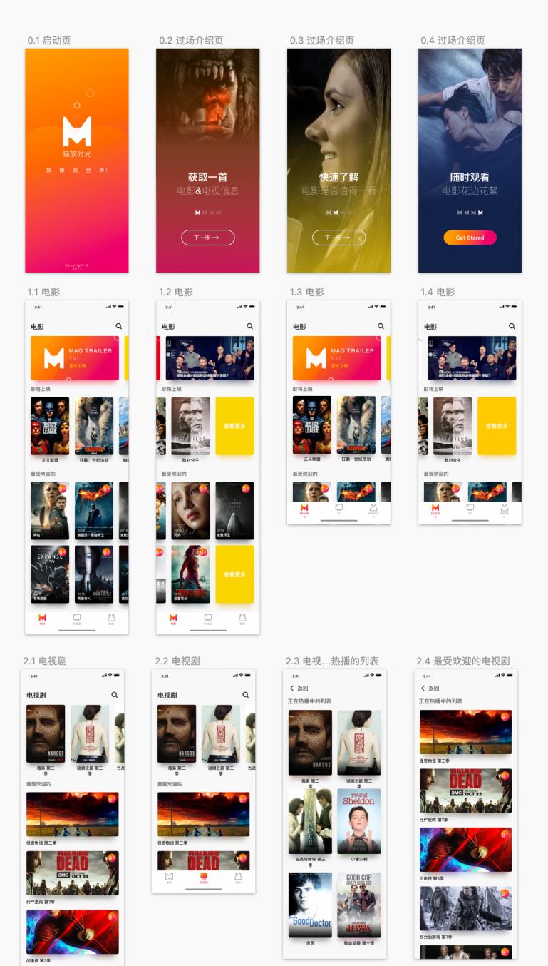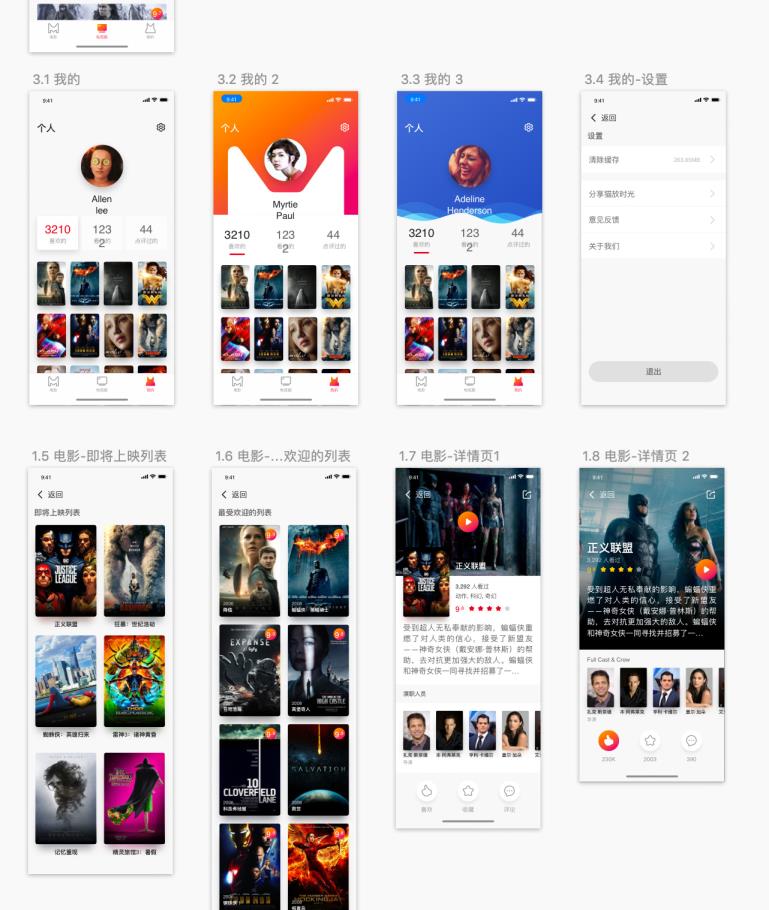 30屏幕中英双语电影App UI Kit Sketch,xd资源