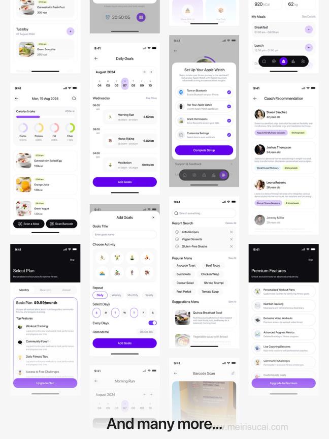 50页app+1页登录页设计健康和健身追踪UI设计figma源文件