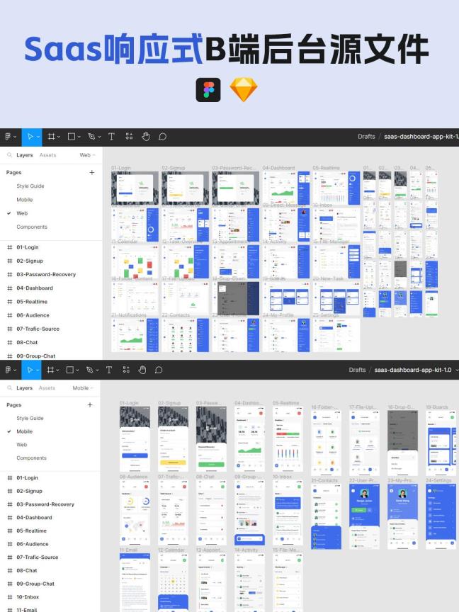 Saas系统B端后台Web+移动端设计Figma、Sketch源文件