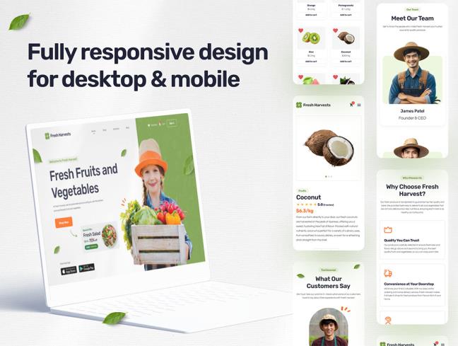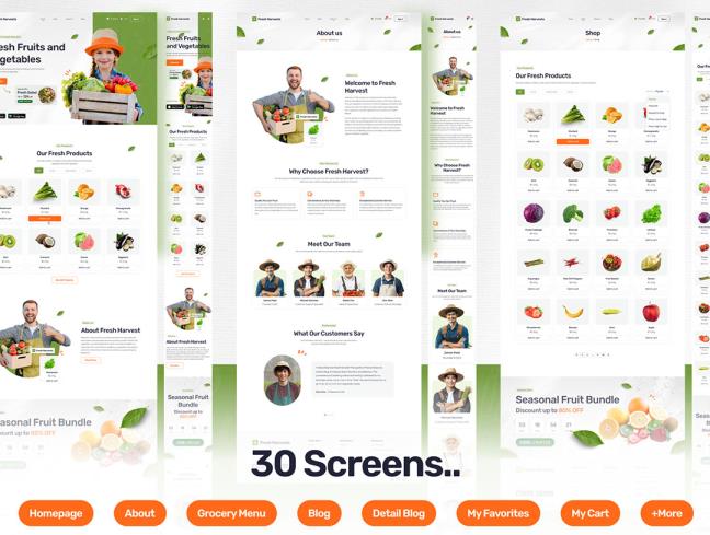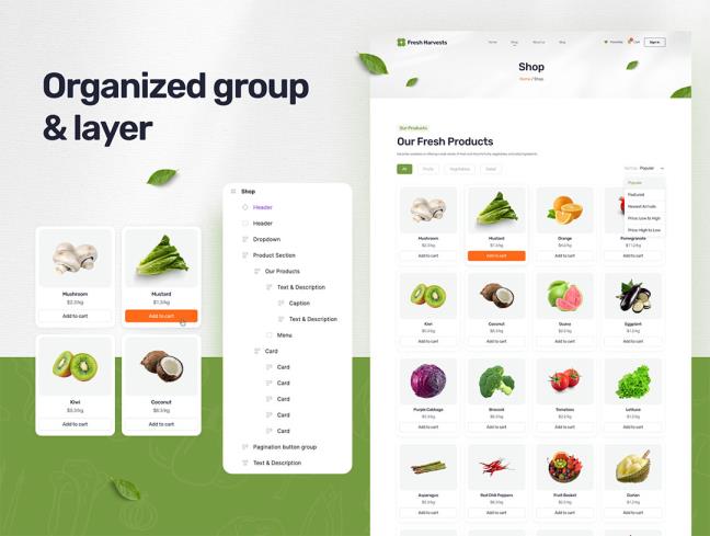 30页响应式UI设计新鲜蔬菜,水果外卖网站设计figma源文件