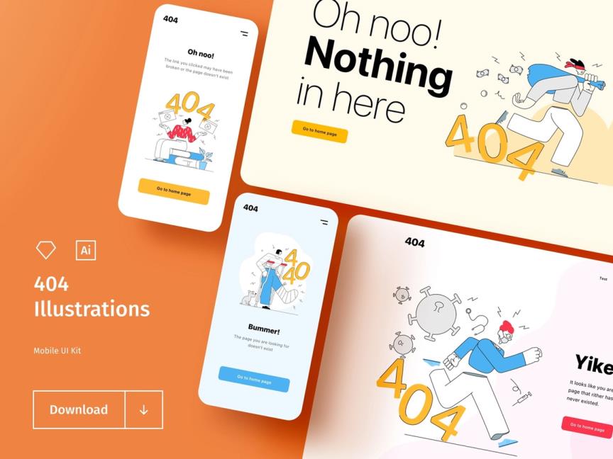 404网页/404插画/404手机页面设计AI、Sketch源文件