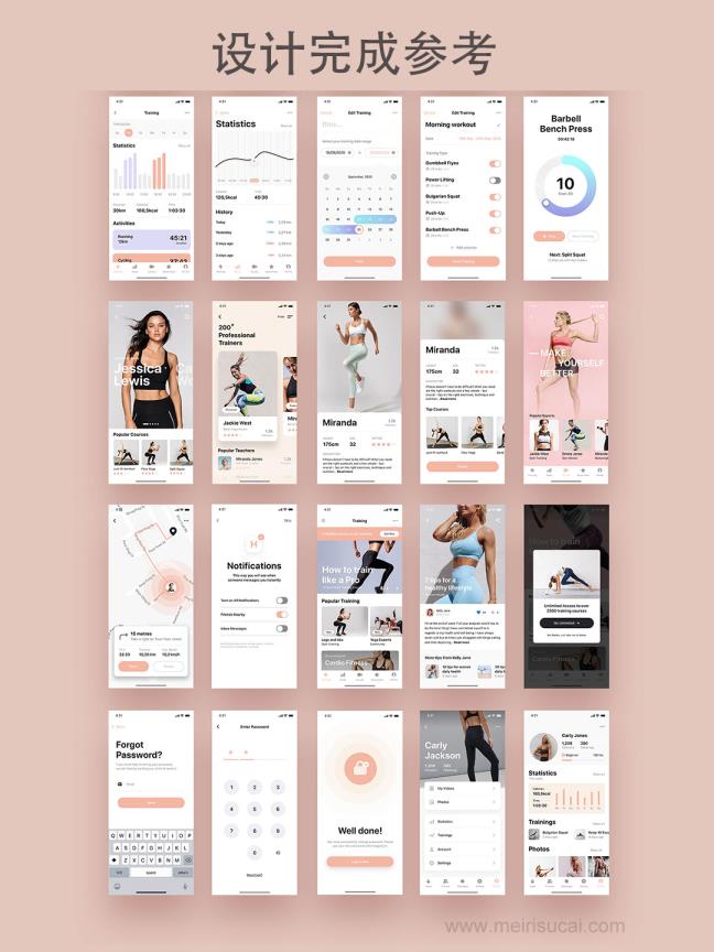 40页健身运动app原型图设计sketch源文件(没有素材图片)