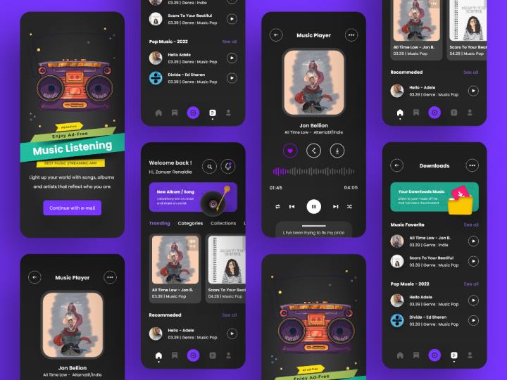 4页暗黑音乐APP界面设计XD、Figma设计源文件