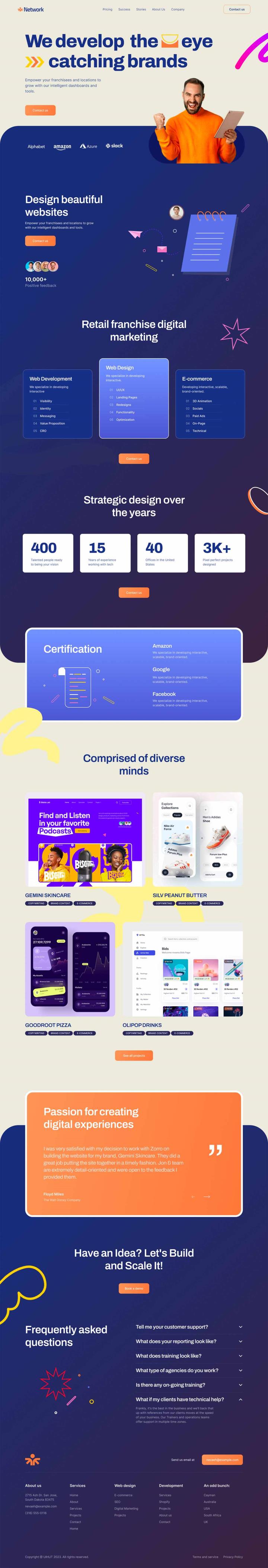 数字营销,设计机构网页设计figma源文件免费分享 2025-06-13 网页设计 概述 主页通常以突出的英雄形象或视频为特色,带有口号或价值主张,以快速传达该机构的核心服务和专业知识。接下来通常是一个网格或关键服务列表,每个服务都有一个简短的描述和一个到专用服务页面的链接以获取更多信息。导航菜单通常位于页面的顶部,网站的每个部分都有清晰简洁的标签,如“关于我们”、“服务”、“投资组合”、“博客”和“联系我们”。这个数字机构网站的UI设计优先考虑清晰的沟通,易于使用,以及现代和专业的美学。 阅读全文 资源下载下载价格1.8 素材币VIP免费升级VIP立即购买