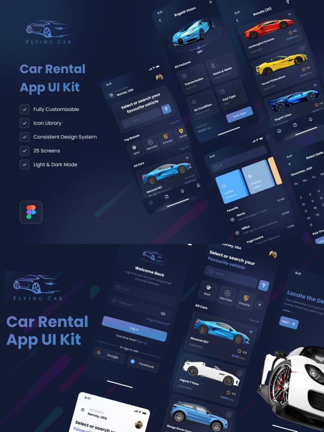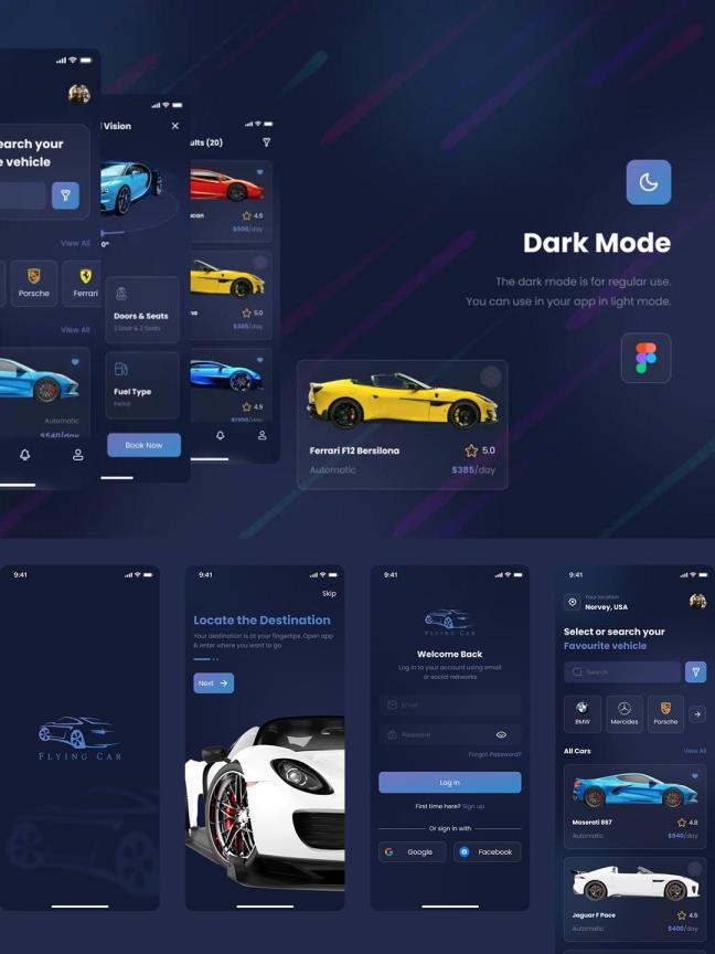 租车APP设计模板 | UI界面设计Figma源文件