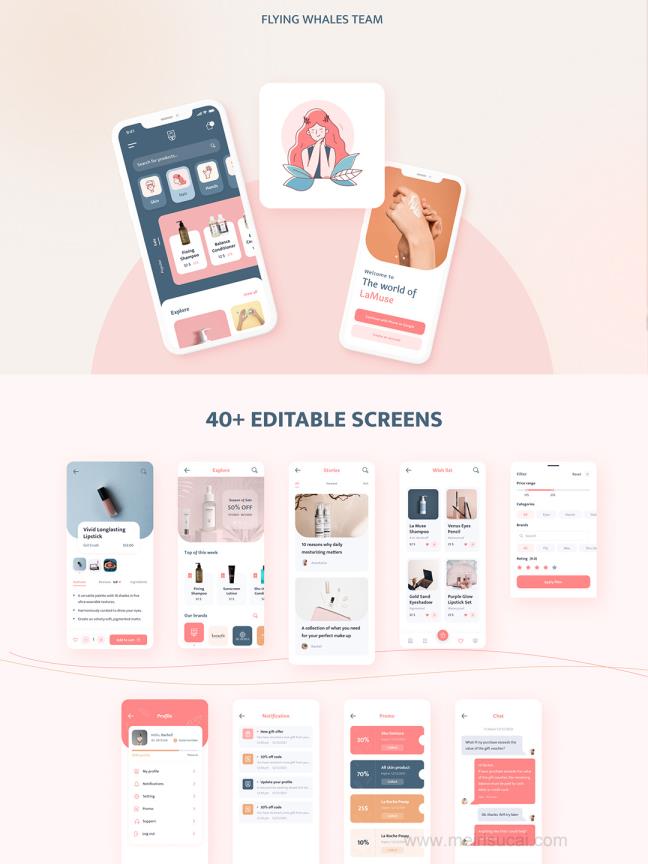 40页化妆品品牌电商app设计sketch,xd,figma格式
