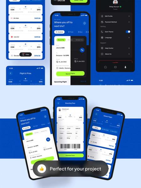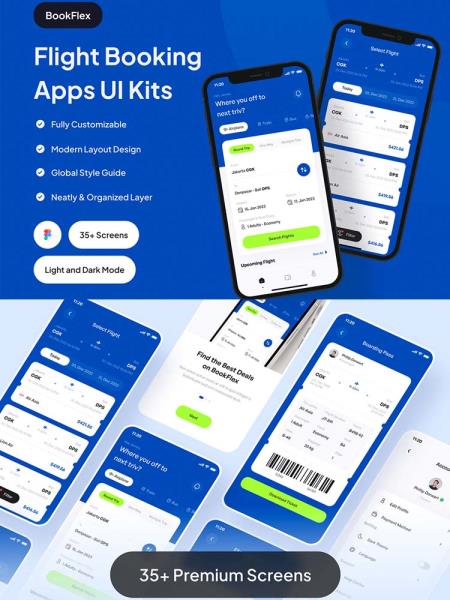 70屏航班预订、机票预订APP UI设计资源素材模板figma源文件