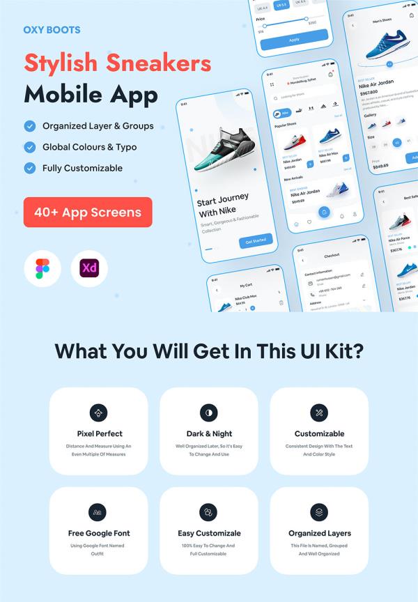 简约大气40屏幕运动鞋商城App UI设计xd,figma源文件 2025-06-09 多格式 鞋子应用程序UI工具包是一个完整的,可定制的iOS移动应用程序解决方案,帮助您为客户创建一个美丽的,现代的鞋子购物体验。鞋子应用程序UI套件是创建专业和现代外观的鞋子购物应用程序的一个好方法。套件包括各种UI元素和图标,对任何鞋子购物应用程序都是完美的。套件是完全可定制的,可以轻松适应任何配色方案或品牌。它提供了所有品牌鞋及其规格的详细清单。它包括40多个免费屏幕,很容易改变颜色。下载并享受应用程序。可在Figma和XD。 阅读全文 资源下载下载价格1.2 素材币VIP免费升级VIP立即购买