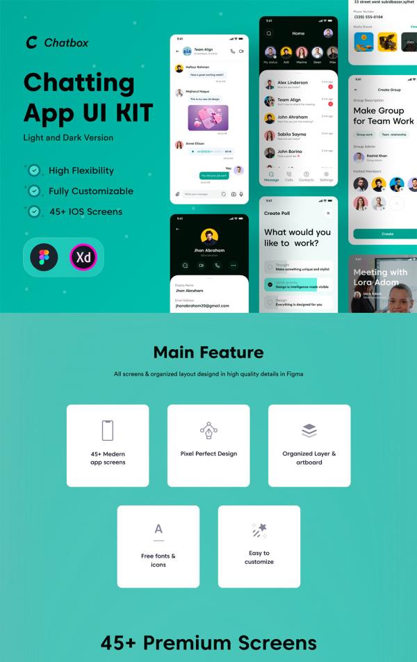 45屏高端聊天app UI设计figma,xd,sketch源文件