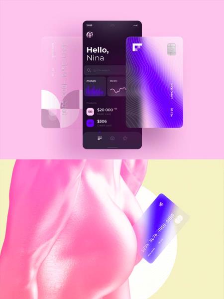 一套毛玻璃质感银行卡样机mockup源文件下载,信用卡样机figma原文件