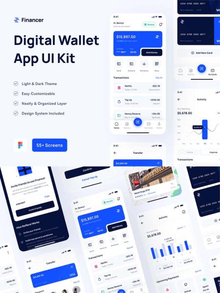 精美金融数字钱包APP UI设计模板资源素材figma源文件