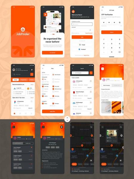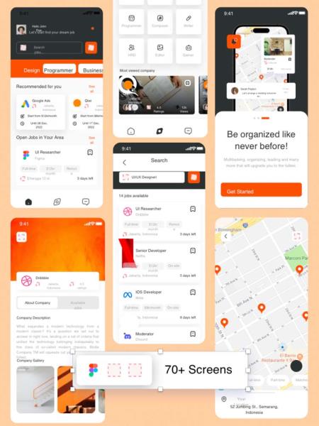 70屏幕,求职找工作、招聘软件APP UI界面设计资源模板fig,sketch,xd三端