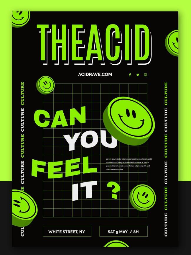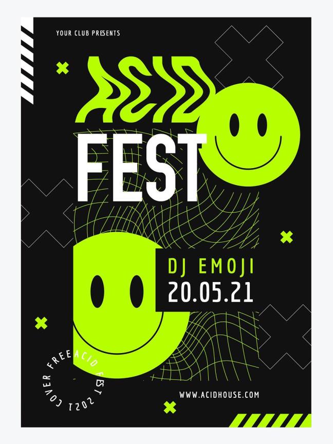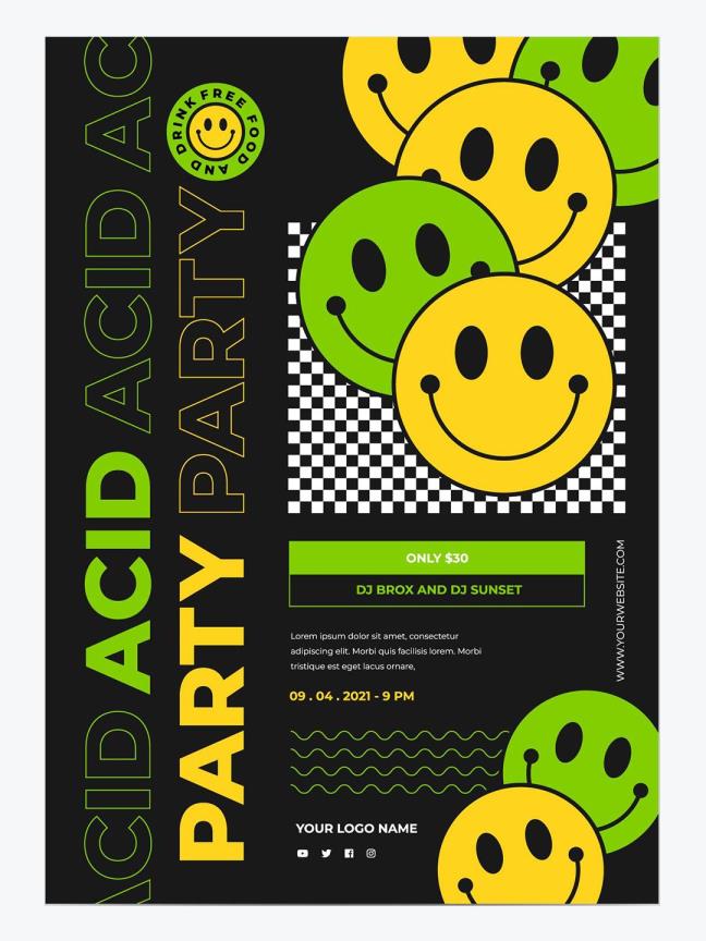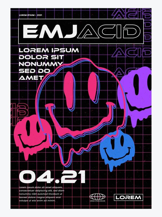 治愈新潮的笑脸孟菲斯系列海报AI设计源文件