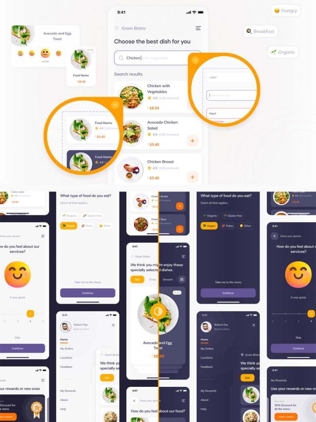 60屏幕高质量餐厅订餐服务App设计figma源文件