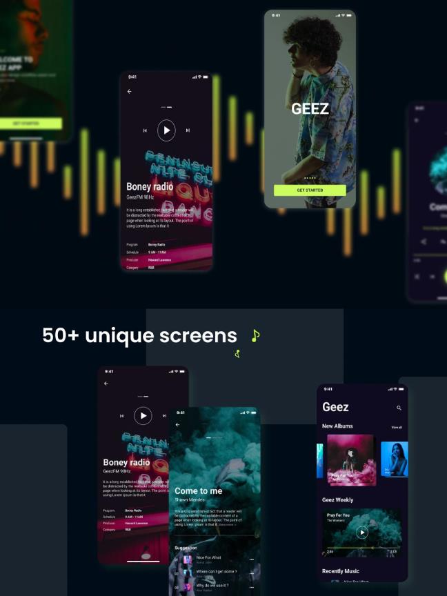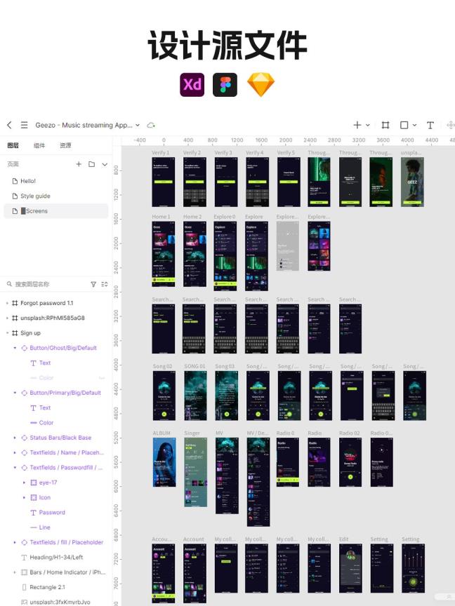 50页音乐APP设计 | 音乐类UI设计sketch,xd,figma源文件