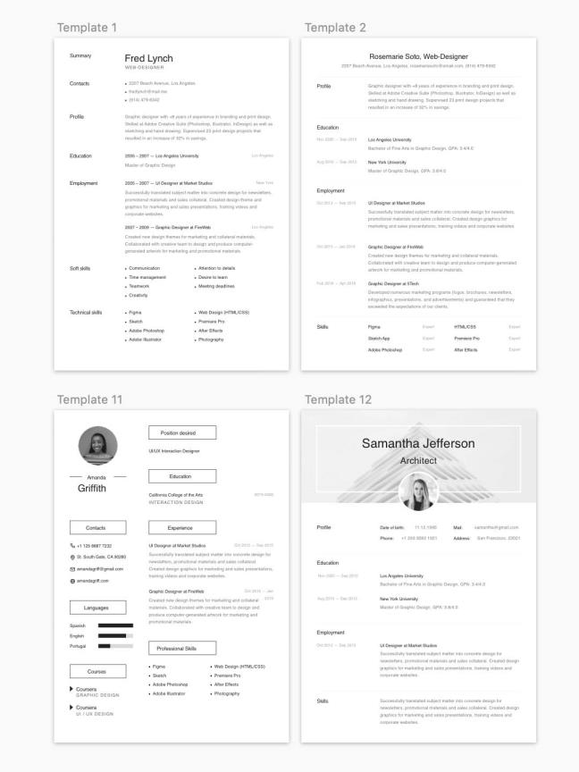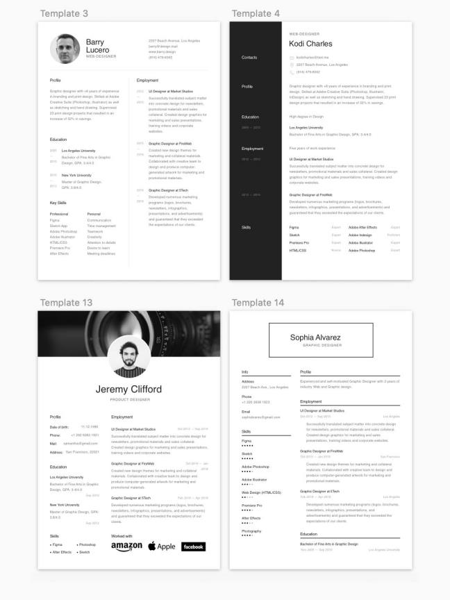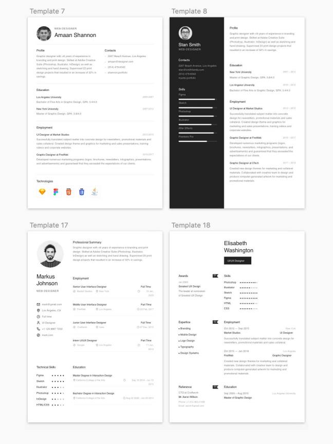 20份高大上简历排版会员版,xd,sketch,figma格式