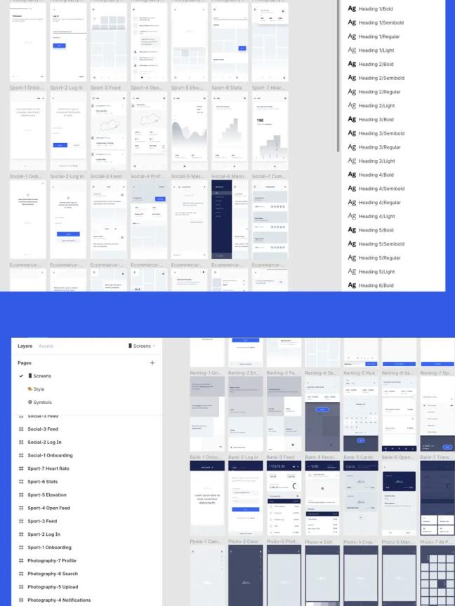 7类迷你App线框,原型图套件模板sketch,xd,figma源文件