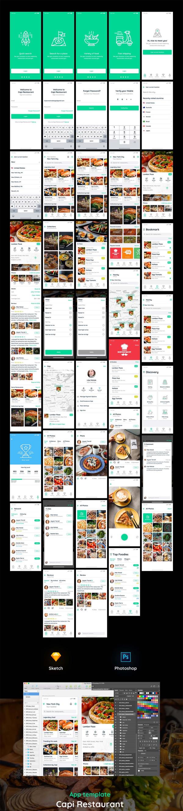 40+页完整美食app ui capi .sketch .xd .psd素材下载
