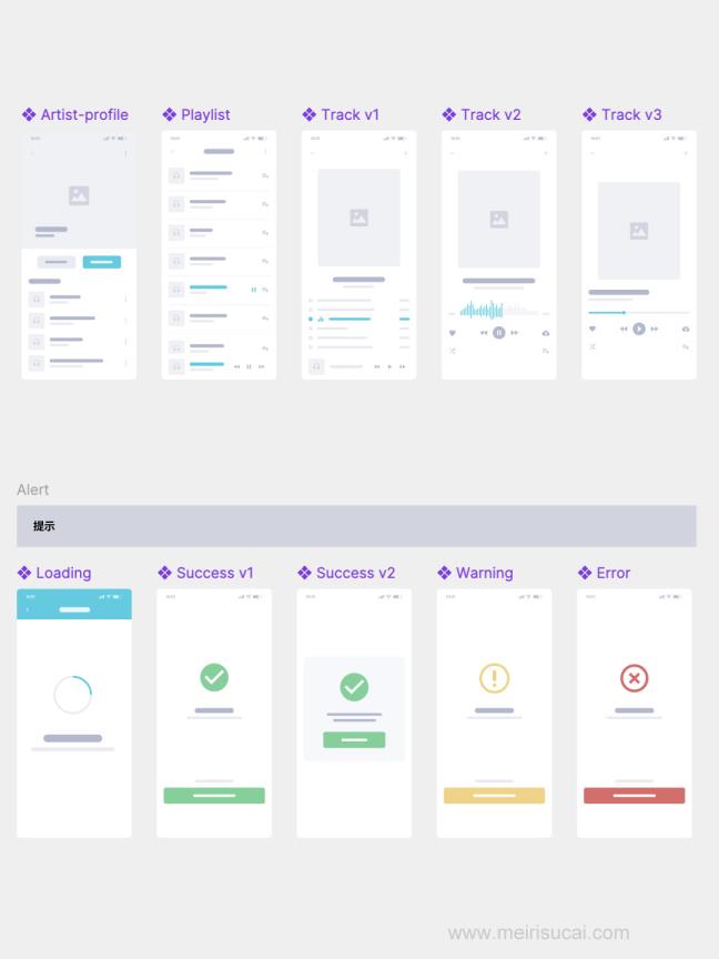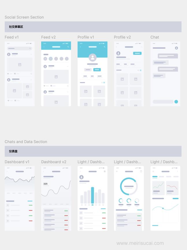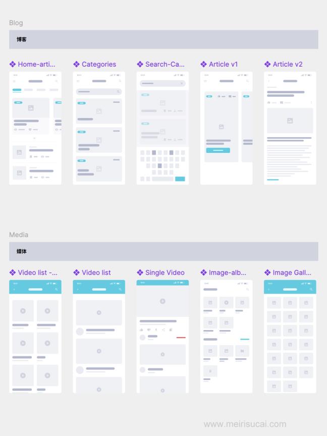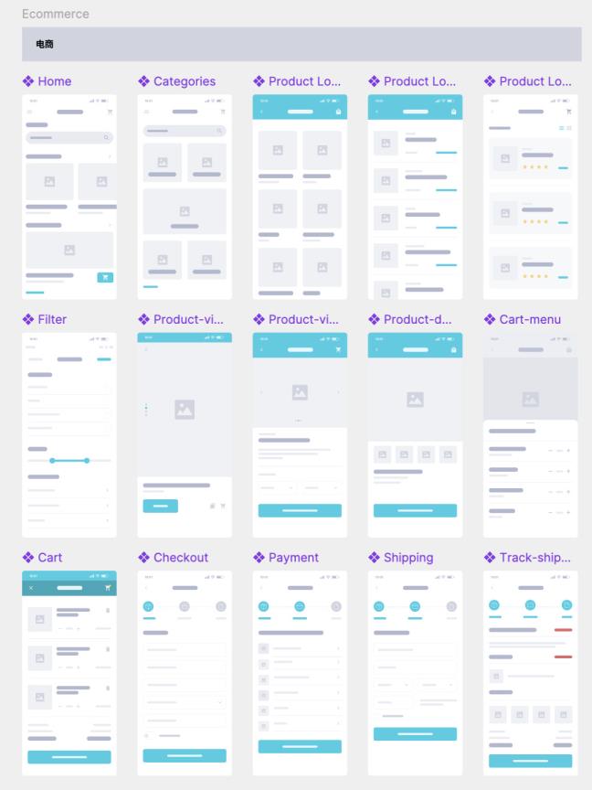 浅色灰色各68页APP移动端设计原型图,线框图figma源文件