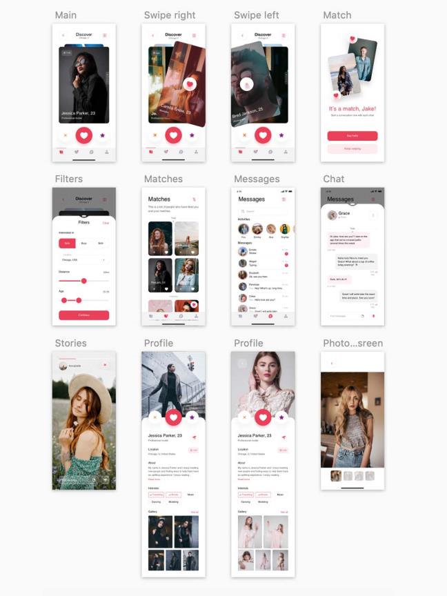 一整套时尚交友,约会App设计源文件分享xd,figma,sketch格式