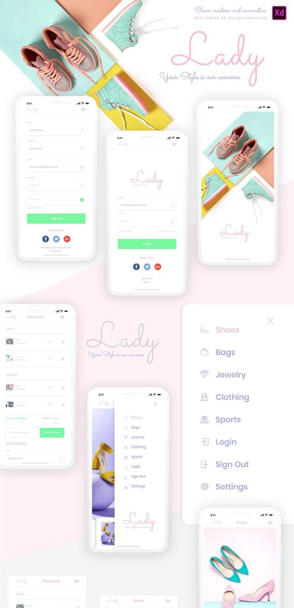 时尚类女士服装鞋品类电商APP,xd,sketch源文件