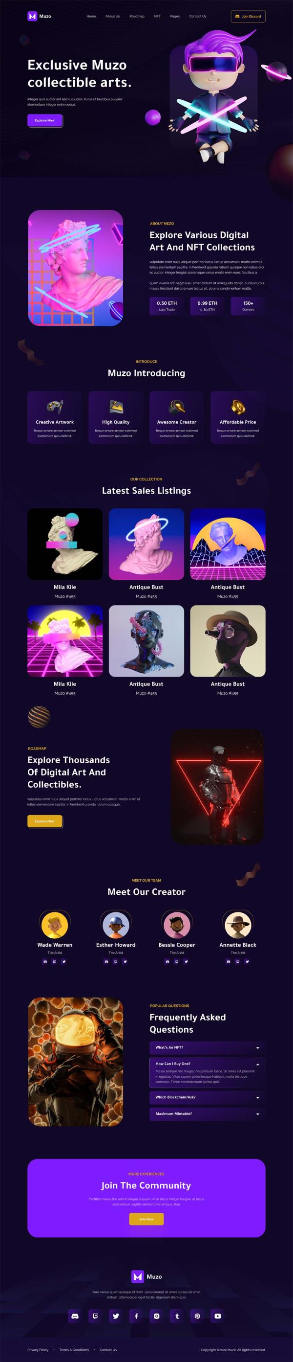NFT 数字藏品市场 – SaaS 着陆页设计figma源文件