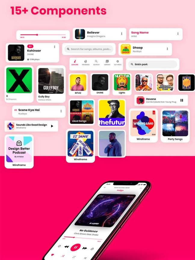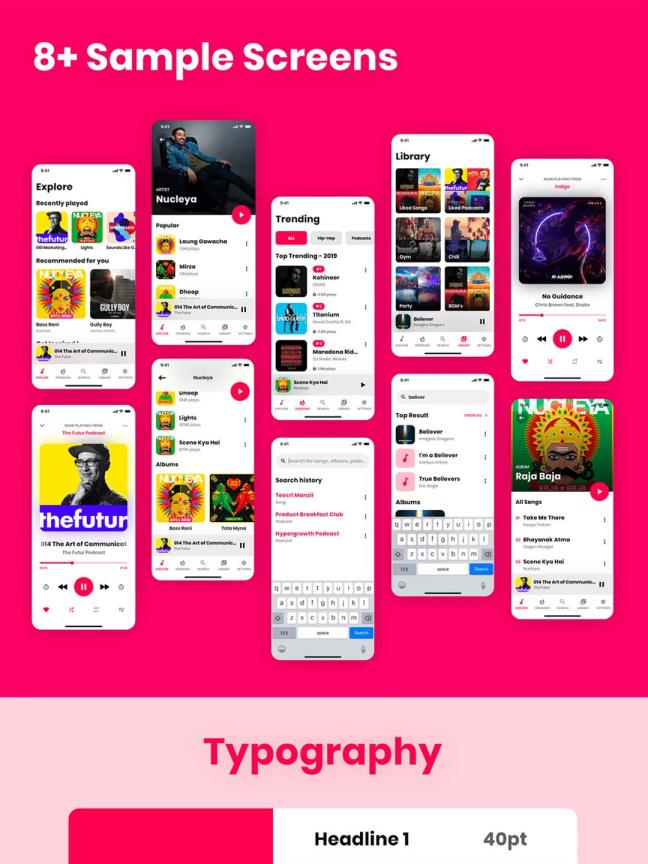 精品音乐类APP UI kit,UI资源下载,skerch源文件下载,UI素材分享